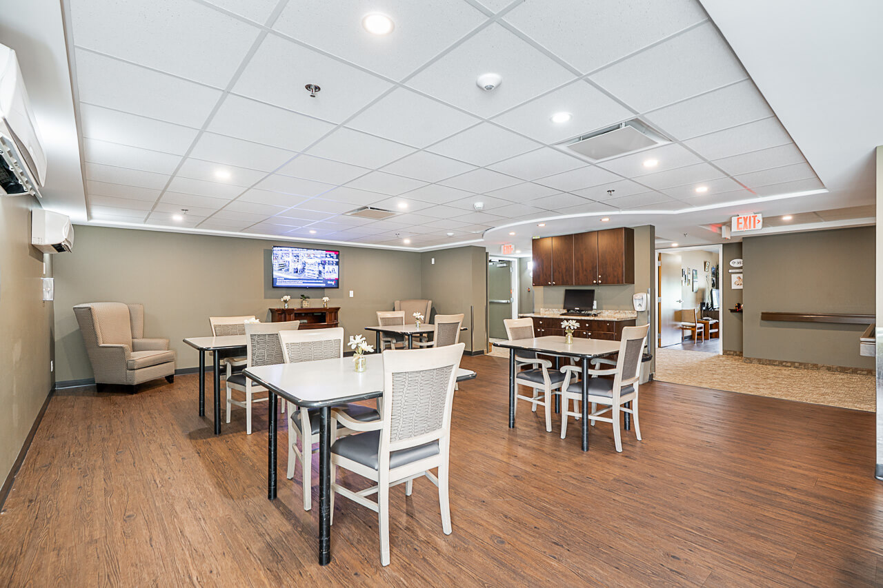 The three-storey residence offers a safe and supportive home for seniors who can no longer live independently due to physical or cognitive issues. The residence separates into seven distinct neighbourhoods, each with its own dining, activity, and family areas. One neighborhood being a Behavioral Support Transition Neighborhood, are for those who need more support in a secure neighborhood.